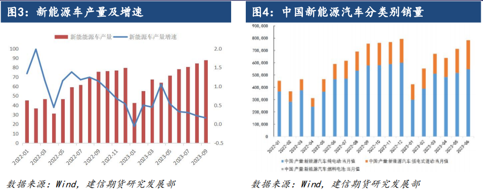 碳酸鋰終端需求主要是集中在新能源車和儲能領域,由于2022年中國新能源車需求的快速增長帶來了產業鏈上下游的產能擴張,2023年正極材料廠、電芯廠產能全面過剩,這種過剩狀態在2024年還將繼續存在,終端領域降本壓力將繼續向電芯廠和正極廠傳導,產業鏈中游超額利潤被壓縮,而且中游領域受新能能源車需求放緩壓力影響,其產量擴張受限。2024年中國新能源車增速換擋海外市場擴張將接力,預計2024年全球新能源車銷量增速將降至30%;儲能市場規模雖在政策推動下進入快速擴張,但絕對量仍偏小,2024-2025年儲能市場對碳酸鋰需求拉動有限。