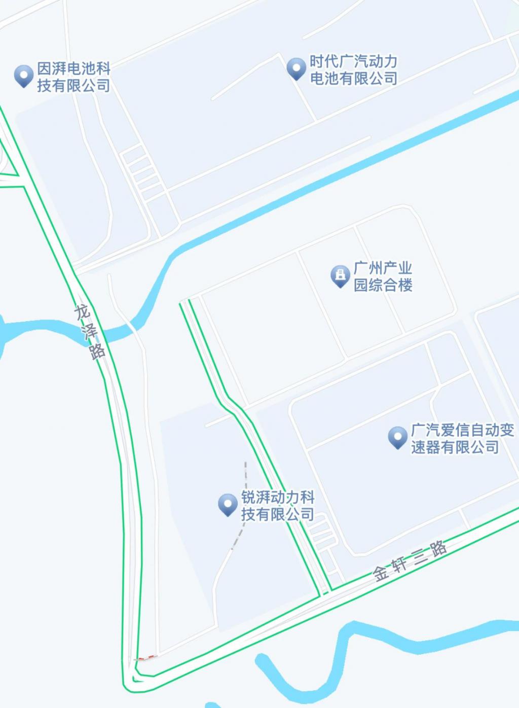 離開工廠時,我打開地圖,恰好看到因湃、銳湃、時代廣汽、廣汽產業園、廣汽愛信出現在同一屏上。