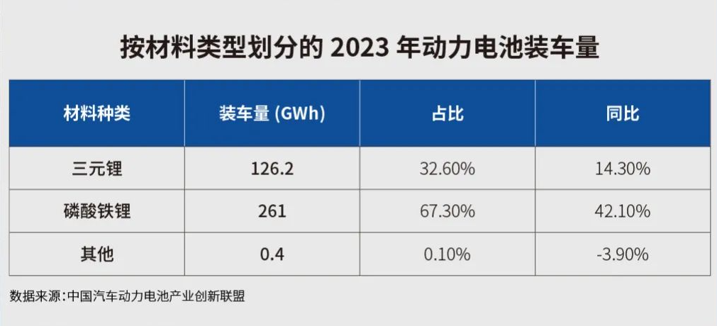 2023年,磷酸鐵鋰電池裝車量大約是三元鋰電池裝車量的2倍。