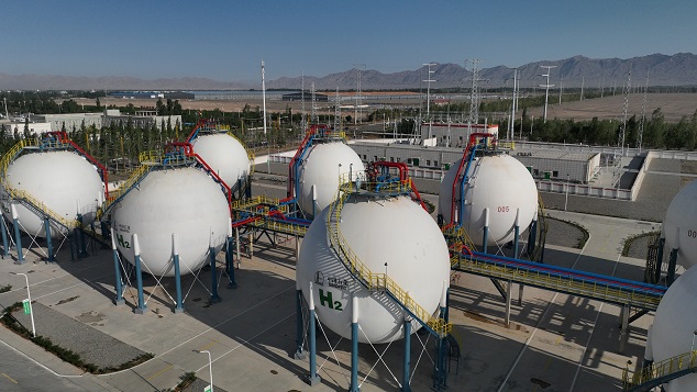 中國(guó)石化綠氫示范項(xiàng)目制氫廠儲(chǔ)氫罐區(qū) 新華社圖文