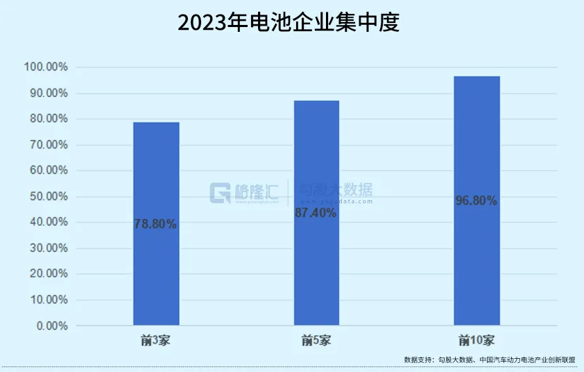 對照往年的裝車量數據,可以發現去年電池企業的市場份額出現了進一步集中。去年光動力電池這一塊共有52家電池企業參與了裝車配套,比2022年同期減少了5家。