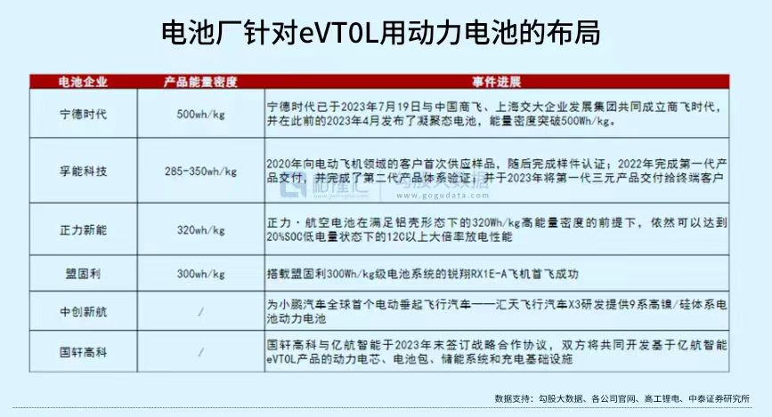 目前國內動力電池企業已經開始搶入這一新賽道。孚能科技已率先量產交付,國軒高科與億航智能于2023年末簽訂戰略合作協議;而中創新航與小鵬汽車深度綁定,為小鵬飛行汽車開發新銳9系高鎳/硅體系電池。
