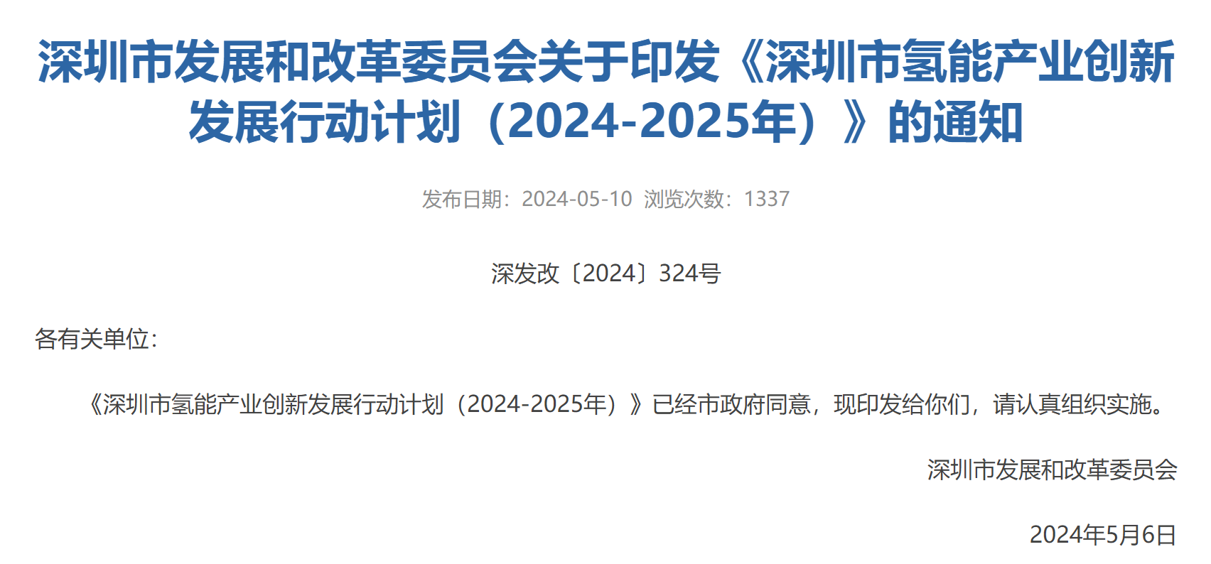 5月10日,深圳市發(fā)改委印發(fā)《深圳市氫能產(chǎn)業(yè)創(chuàng)新發(fā)展行動計劃(2024—2025年)》的通知,計劃投入一定的資金和其他補(bǔ)貼,引進(jìn)優(yōu)質(zhì)企業(yè)、培養(yǎng)氫能人才、建設(shè)標(biāo)準(zhǔn)化體系、推動加氫站建設(shè)、研發(fā)氫能技術(shù)。