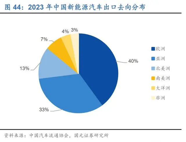 事實上,盡管我國新能源車出口量不斷攀升,但美國市場所占比重并不大。中國汽車工業協會公布的數據顯示,2023年我國汽車產銷量創歷史新高,其中,新能源車出口120萬輛,同比增長78%。據國元證券援引中國汽車流通協會數據顯示,2023年中國新能源車出口第一大市場歐洲和第二大市場亞洲合計占比達77%,美國所在的北美洲市場占比僅為13%。