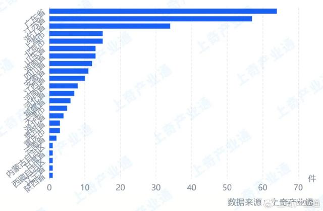 近1年,廣東省、江蘇省和浙江省發(fā)生融資事件最多,分別發(fā)生64、57和34筆。