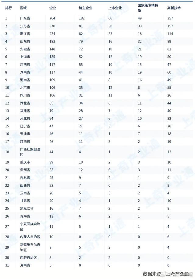 (二)區(qū)域分布:廣東、江蘇和浙江企業(yè)數(shù)量位居前三