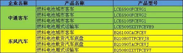 特點二、值得注意的是,在入選產品最多的中通客車和東風汽車所入選的產品中,不僅是燃料電池客車產品,還包含有其他相關燃料電池產品。