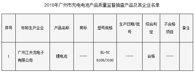 電池產(chǎn)品質(zhì)量監(jiān)督抽查結(jié)果,共抽查了1家企業(yè)生產(chǎn)的1批次產(chǎn)品,經(jīng)檢驗,全部產(chǎn)品均符合標(biāo)準(zhǔn)要求。