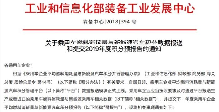 工信部要求車企提交2019年雙積分預報告