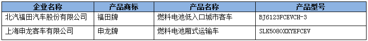 北汽福田和上海申龍燃料電池產品申報工信部第315批《道路機動車輛生產企業及產品公告》新產品
