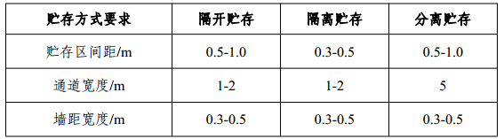 在同一房間或同一區域內,將不同的廢舊動力蓄電池之間分開一定距離,用通道保持空間的貯存方式。
