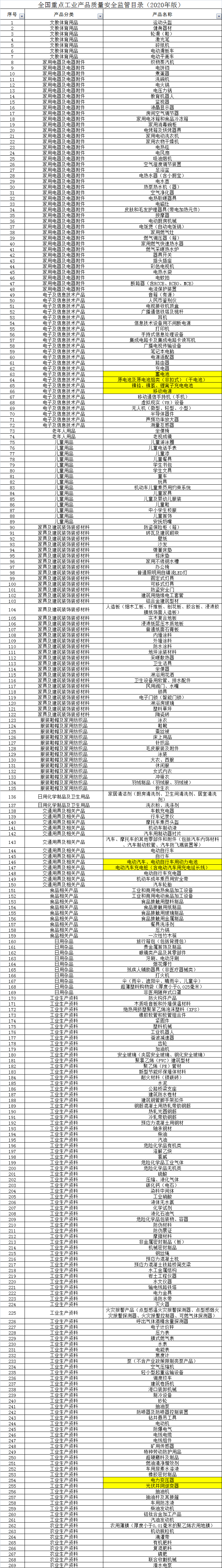 全國(guó)重點(diǎn)工業(yè)產(chǎn)品質(zhì)量安全監(jiān)管目錄(2020年版)
