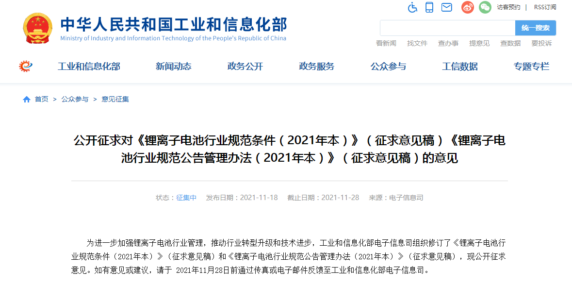 電池行業(yè)規(guī)范條件(2021年本)》(征求意見稿)和《鋰離子