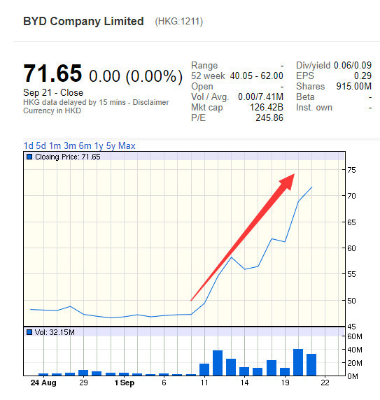 工業(yè)和信息化部副部長辛國斌9月9日表示,政府正在與監(jiān)管機構合作,研究制定停止生產銷售燃油汽車的時間表。自那之后,比亞迪香港股價已上漲逾50%。