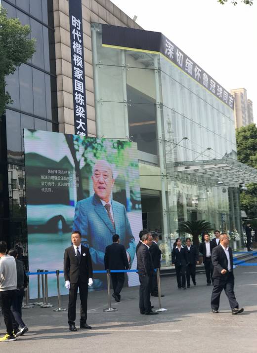 10月30日八時,萬向集團董事局主席魯冠球的悼念儀式在浙江杭州寧圍鎮的萬向集團多功能廳舉行。