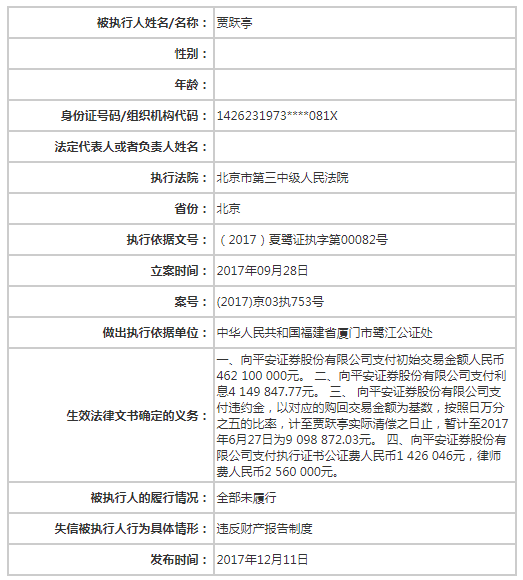 賈躍亭3天內(nèi)2次被列為“老賴” 總涉案金額近8億2017-12-15 12:53