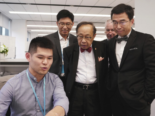 陳清泉院士在丁磊董事長(右一)、墨斐(右二)和陳威旭(左二)陪同下參觀了上海技術中心和運營中心。