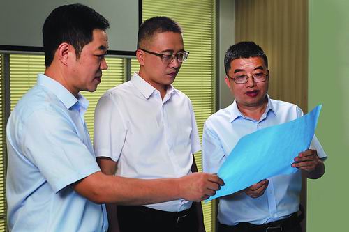 傅云峰(右一)與團(tuán)隊(duì)討論問題。受訪者供圖