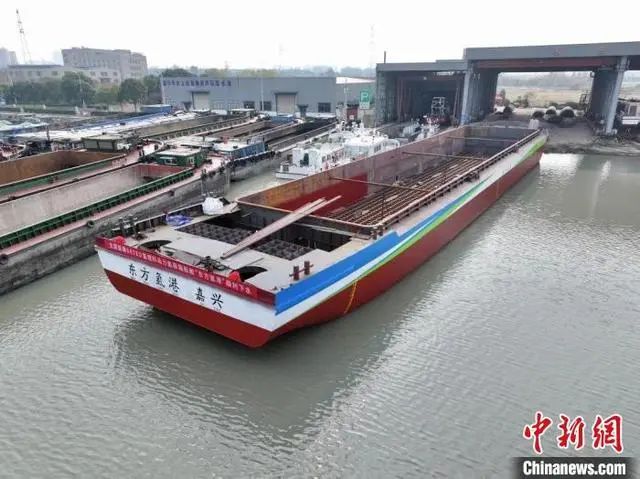“東方氫港”號順利下水。嘉興港區(qū)供圖