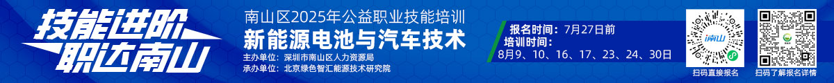 南山區2025年公益職業技能培訓 新能源電池與汽車技術 福利開課!!! 新能能源電池與汽車技術公益培訓來啦! 只要 0 元 輕松掌握新技能! 名額僅 50 個,手慢無...