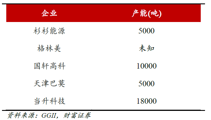 部分國內廠商的高鎳三元材料的投產計劃