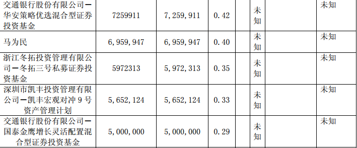 交通銀行-華安策略優選混合型證券投資基金、交通銀行-國泰金鷹增長靈活配置混合型證券投資基金、浙江冬拓投資管理有限公司-冬拓三號私募證券投資基金、深圳市凱豐投資管理有限公司-凱豐宏觀對沖9號資產管理計劃,第二季度新進入前十大股東名單。