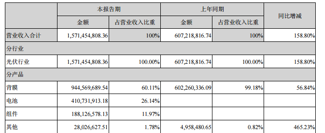 報告期內,公司繼續圍繞太陽能光伏產業,深化打造三大業務板塊:背膜業務、高效