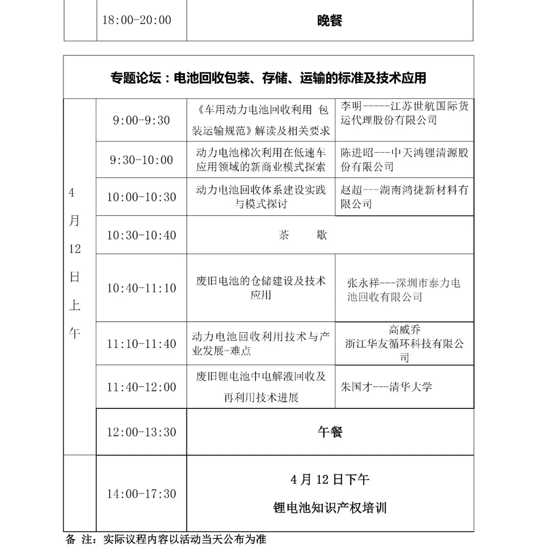 北京賽德美資源再利用研究院有限公司 鞏義市城區潤達機械廠 感謝上述單位對本次會議提供贊助支持。 距離會議開幕還有6天 2019動力電池回收網絡建設研討會即將在北京召開。本次會議包括一個主題論壇、兩個專題論壇和一個圓桌論壇,十余位行業大咖受邀到會演講