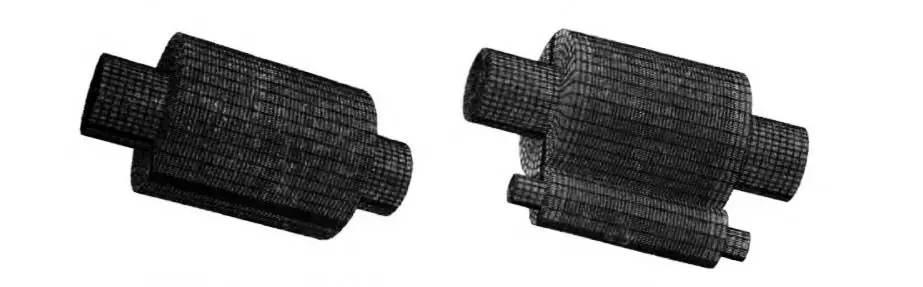 劃分網格方式選擇掃掠的方式,二輥輥壓機軋輥采用六面體單元C3D20R,四輥輥壓機軋輥采用六面體單元C3D8I,如圖3。