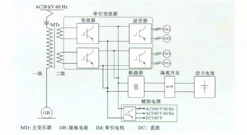 圖1. AC接觸網充電電池牽引列車的牽引供電系統配置