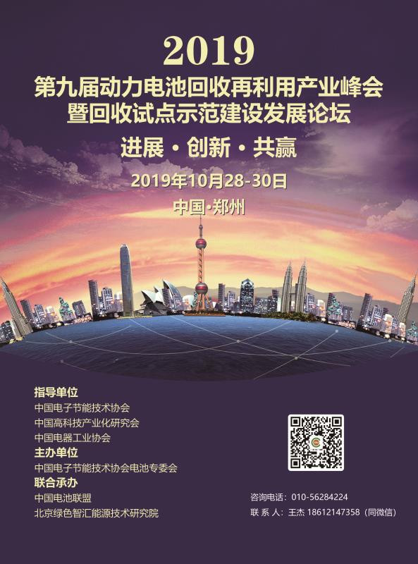 第九屆動力電池回收再利用產業峰會,暨回收試點示范建設發展論壇即將于10月28-30日在鄭州召開!