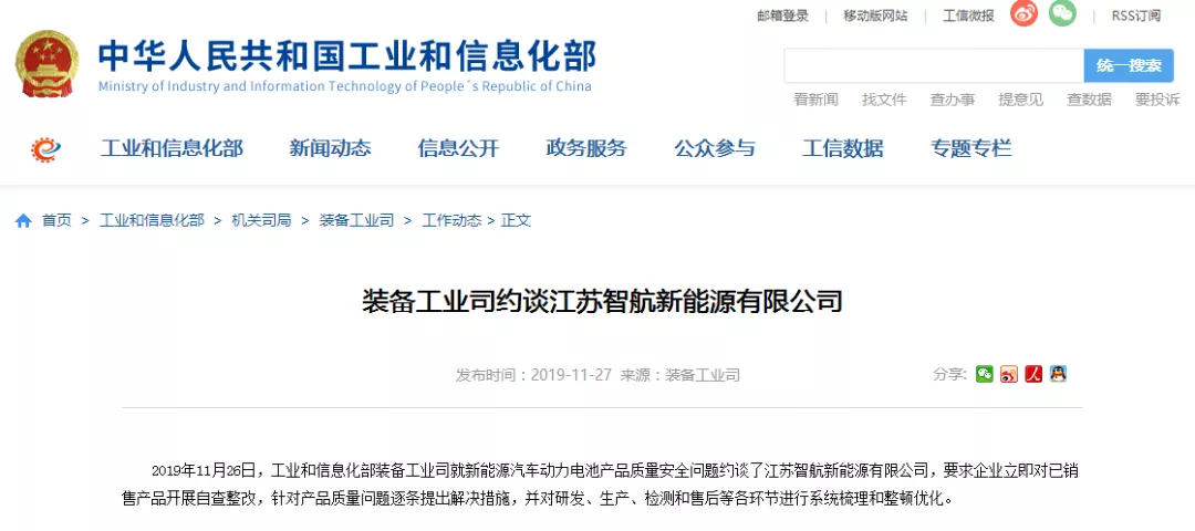 工信部就動力電池產品質量安全問題約談智航新能源