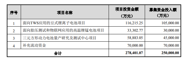 電池項(xiàng)目、三元方形動(dòng)力電池量產(chǎn)研究及測(cè)試中心項(xiàng)目和補(bǔ)充流動(dòng)資金。