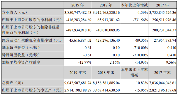 4月23日,多氟多發(fā)布2019年年度報(bào)告。2019年公司完成營業(yè)收入38.51億元,較去年同期下降1.59%;歸屬于上市公司股東的凈利潤-4.16億元,同比下降731.56%;期末總資產(chǎn)90.43億元,較去年同期增長10.83%;歸屬于上市公司股東的凈資產(chǎn)29.14億元,較去年同期下降15.95%;基本每股收益為-0.61元,上年同期為0.1元。