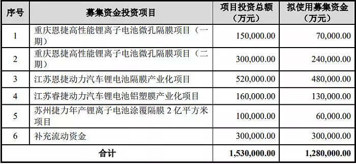 電池隔膜產業化項目、江蘇睿捷動力汽車鋰電池鋁塑膜產業化項目、蘇州捷力年產鋰離子電池涂覆隔膜2億㎡項目以及補充流動資金。