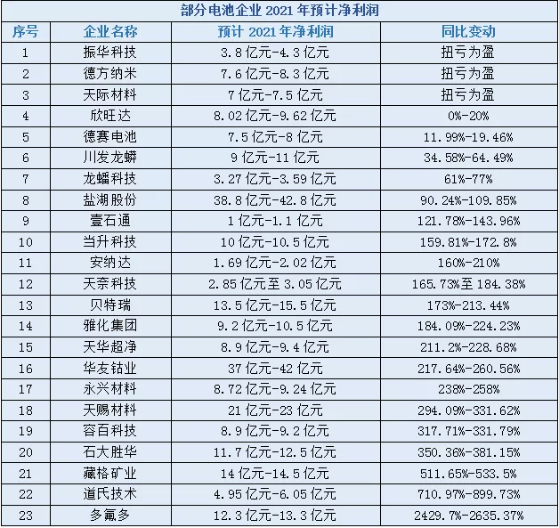 盤點 | 多家電池企業2021年業績預喜