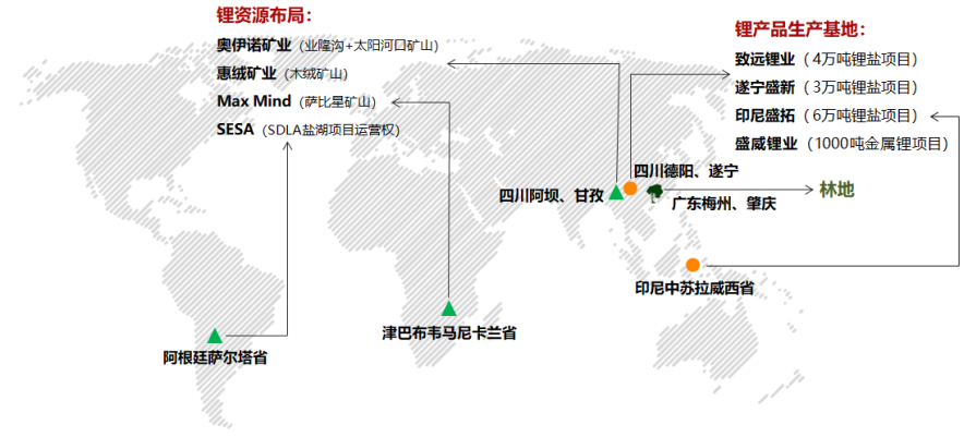 圖二:盛新鋰能鋰資源及鋰產(chǎn)品布局圖