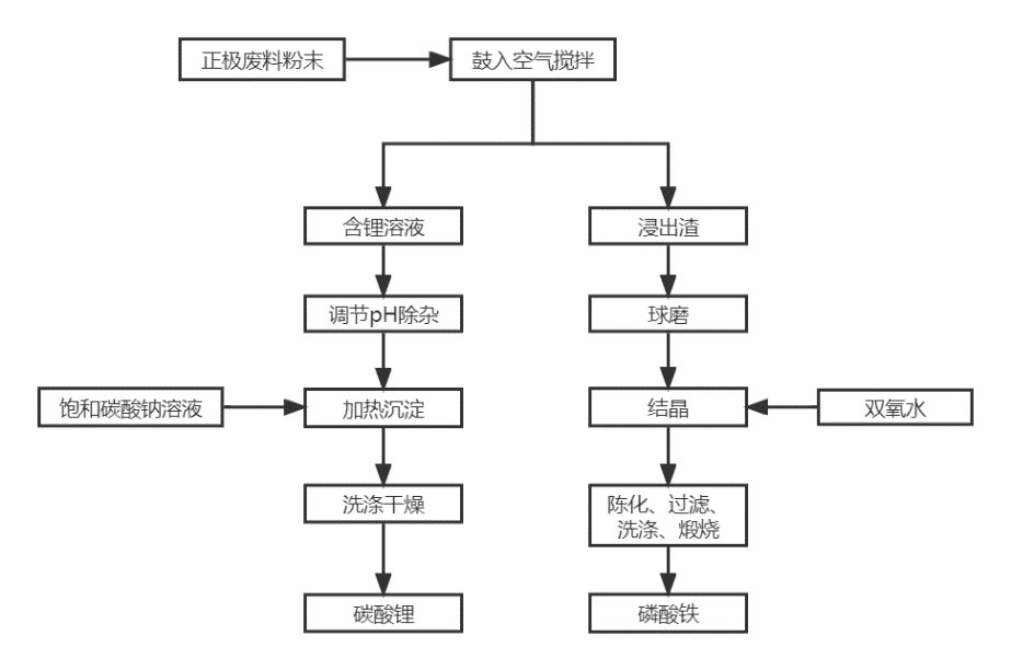 國內企業充分回收利用廢舊磷酸鐵鋰各元素的技術獲得一定突破。以光華科技為例,其“磷酸鐵鋰正極廢料回收制備電池級碳酸鋰和磷酸鐵的方法”能夠回收生產電池級碳酸鋰和電池級磷酸鐵,其中鋰回收率達95%以上,可進一步制備99%電池級碳酸鋰;磷、鐵侵出率平均回收率可達 95%,可制備電池級磷酸鐵。此外,該技術利用低酸浸出提鋰除雜,避免低鋰高鹽溶液的產生從而確保鋰的高回收率,大部分母液如飽和碳酸鈉溶液等可返回工藝系統使用,可大幅降低廢液處理量和處理成本。