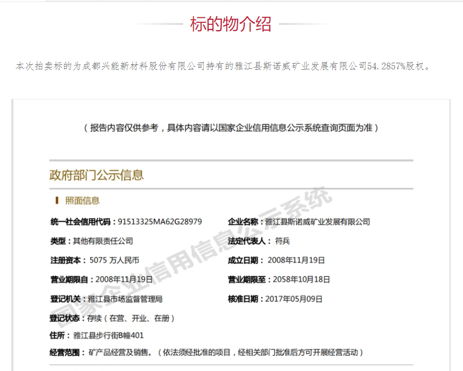 據了解,斯諾威公司擁有四川省雅江縣德扯弄巴鋰礦、石英巖礦詳查探礦權。