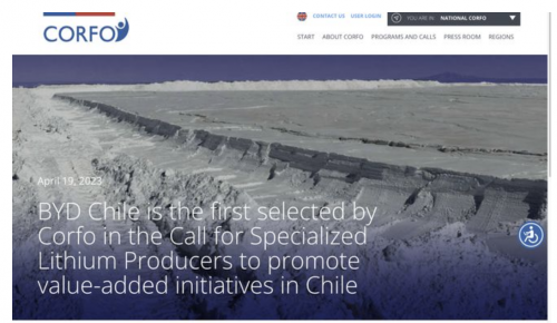 4月20日消息,當地時間4月19日,智利國有公司CORFO官網宣布,授予比亞迪智利公司合格鋰生產商地位,以便其可以獲得