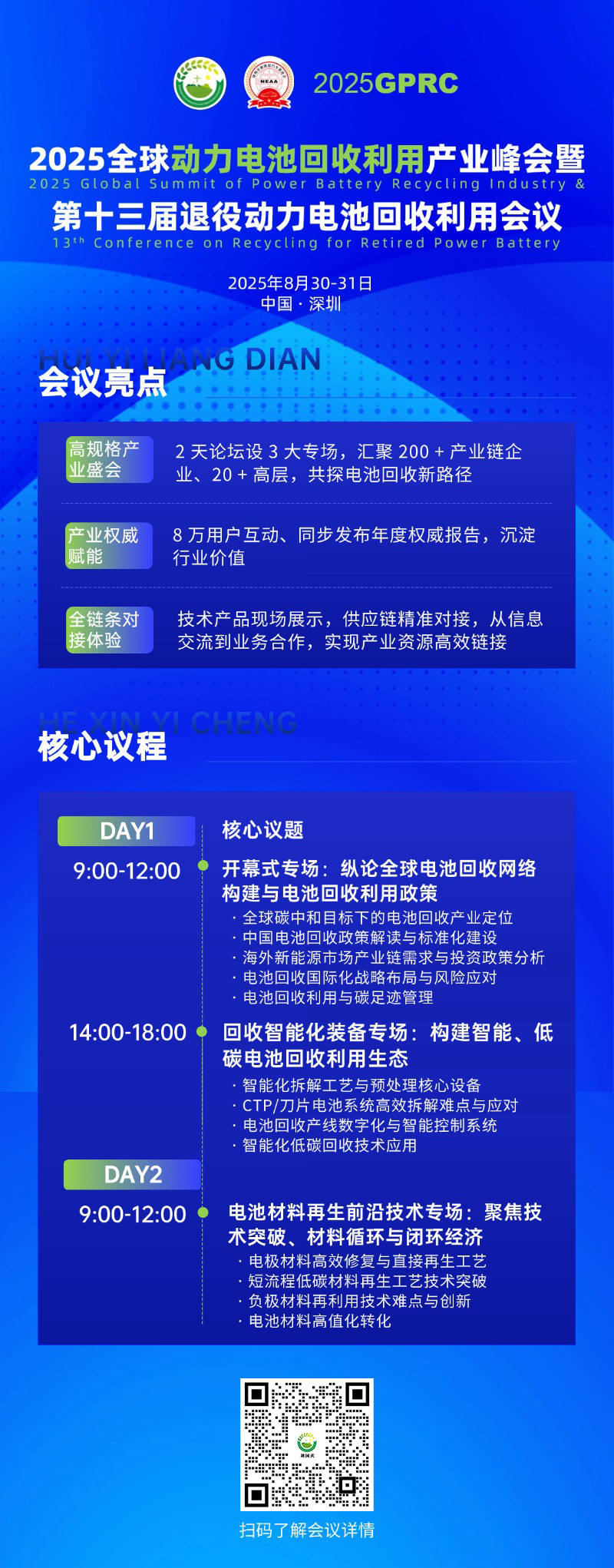 關于舉辦 2025 全球動力電池回收利用產業峰會暨第十三屆退役動力電池回收會議通知2025-06-20 09:23
