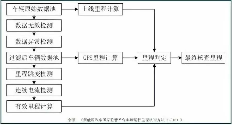 3. 國家監管平臺核定的行駛里程數不滿足2萬公里。為了避免新能源車輛領取補貼后閑置,國家規定了2萬里公里的行駛里程門檻,并使用核查周期內的首次里程、末次里程計算總在線里程。有效里程的具體計算方式為:有效里程=上線里程-里程跳變需扣除里程-連續電流檢測需扣除里程。