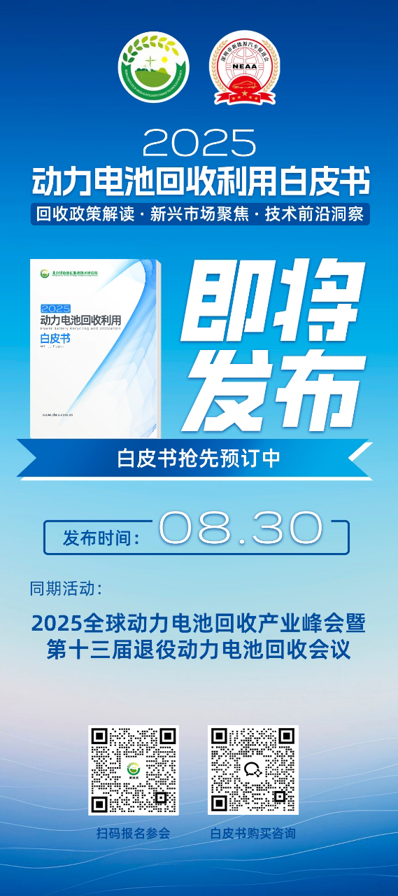 隨著我國新能源汽車保有量突破3140萬輛,動力電池規模化“退役潮”來臨。2025年預計退役量達82萬噸,2030年將超400萬噸,市場規模有望突破2800億元。然而,行業仍面臨回收渠道混亂、技術瓶頸、“黑作坊”泛濫等挑戰,規范化回收率不足25%。在此背景下,由北京綠色智匯能源技術研究院編纂的《2025動力電池回收利用白皮書》(下稱《白皮書》)將于近期發布,旨在為深度解析電池回收利用產業鏈,為產業可持續高質量發展提供助力。