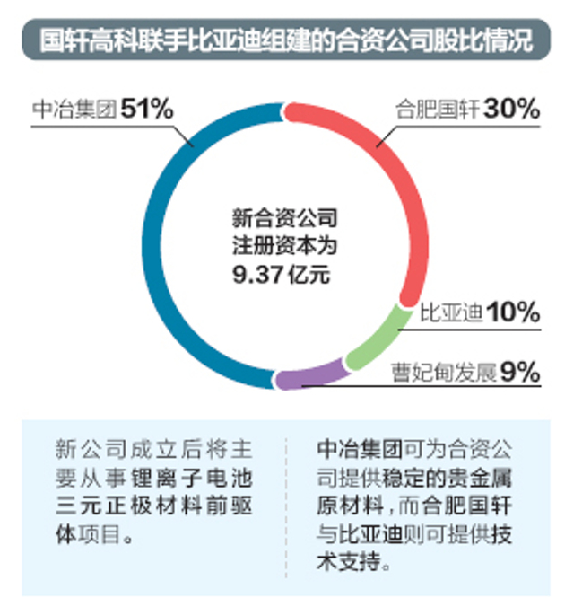 “中冶集團可為合資公司提供穩定的貴金屬原材料,而合肥國軒與比亞迪則可提供技術支持。”馬桂富對記者說。